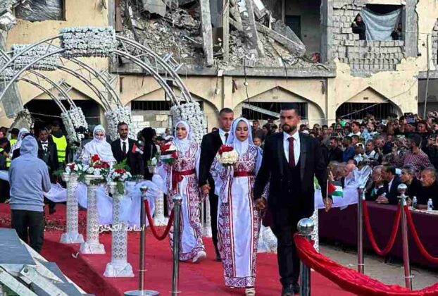 54 COUPLES TIE KNOT DURING MASS WEDDING AMID GAZA RUINS