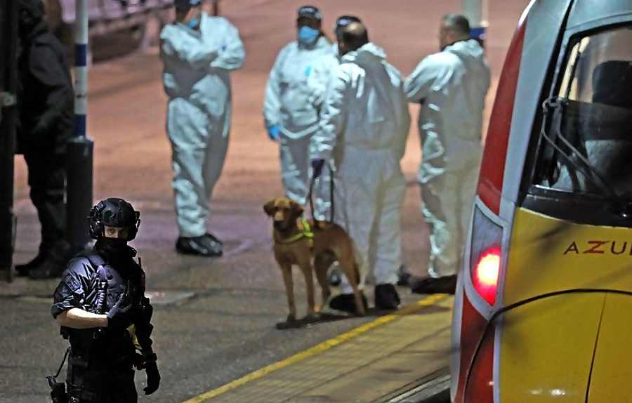 The train was stopped at Huntingdon station in Cambridgeshire, where armed officers backed by police cars, a fleet of ambulances and two air ambulances swarmed the station in the eastern England market town.