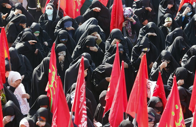 People attend the funeral of two Islamic Revolutionary Guard Corps members killed in an Israeli air strike on Syria this year. Abedin Taherkenareh/EPA