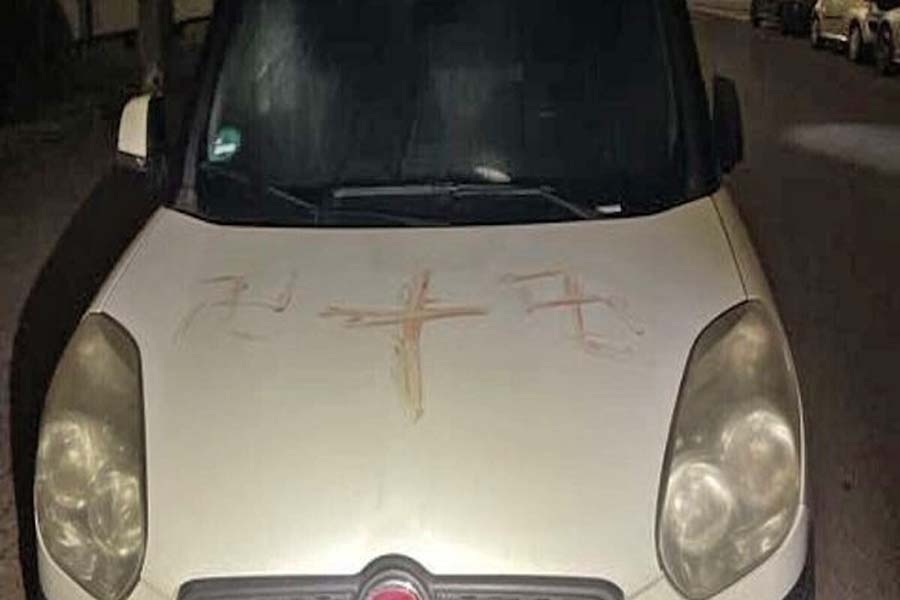Police in the German city of Hanau arrested a man Thursday after nearly 50 vehicles, mailboxes and building facades were vandalized with blood drawn in the shape of swastikas.