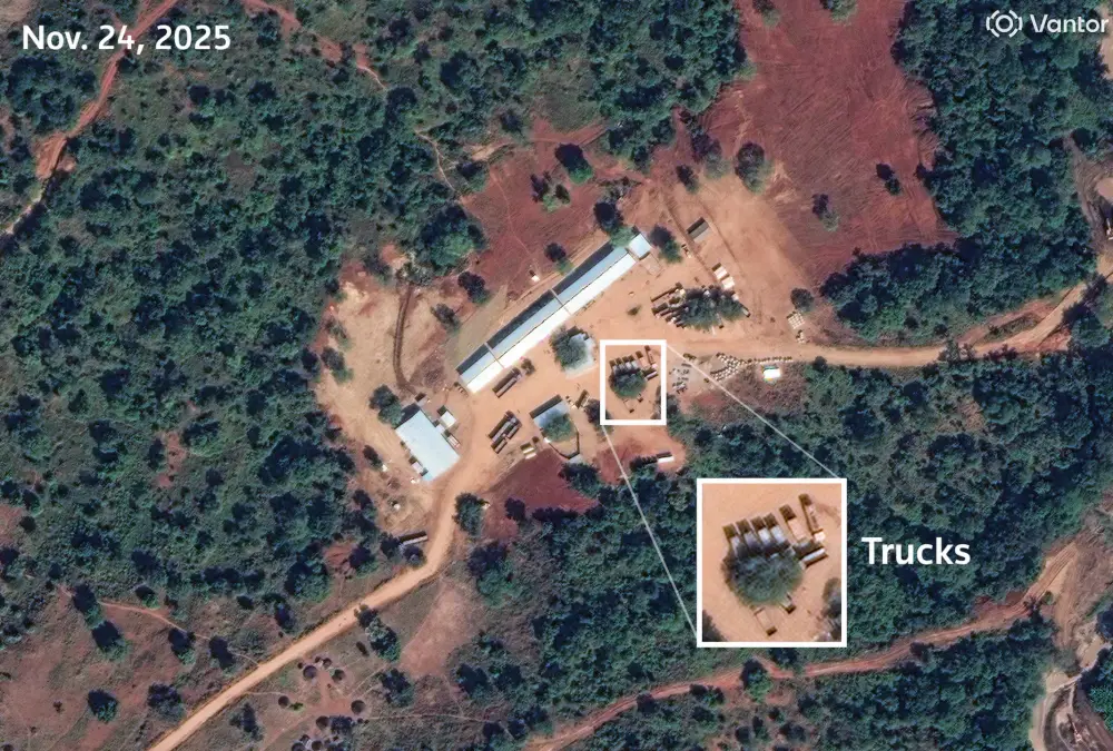 An image taken on Nov. 24 by U.S. firm Vantor shows more than 640 tents, each about four meters square. Jane’s assessed the camp could house at least 2,500 people, though it said it could not confirm the site was military.