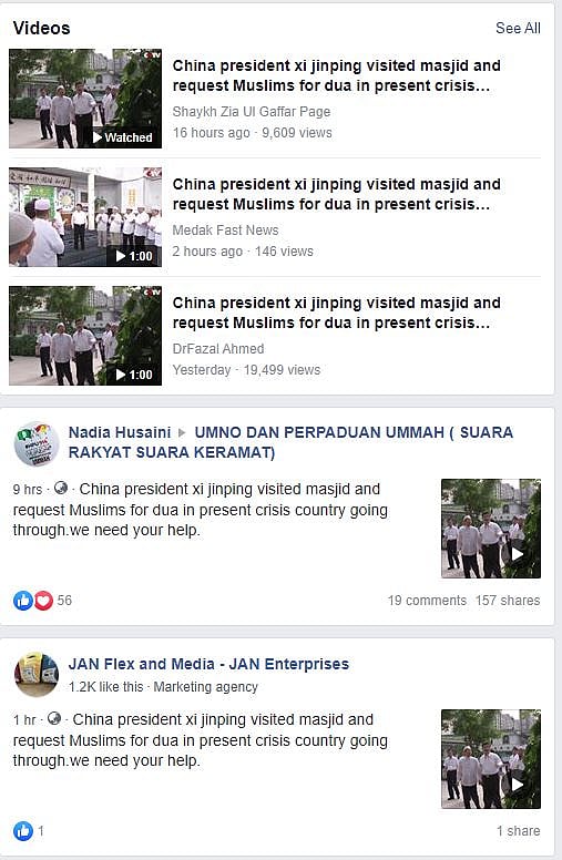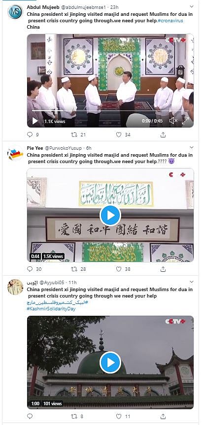 This is the caption of the video: “China president xi jinping visited masjid and request Muslims for dua in present crisis country going through. we need your help (sic).”