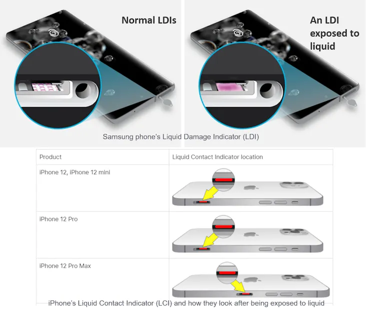 Samsung and Apple phones have Liquid Contact/Damage Indicators. Samsung/Apple