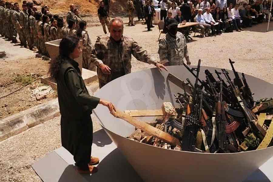 Dozens of PKK terrorists handed over their weapons in a ceremony in northern Iraq on Friday, marking a symbolic but significant first step toward ending a decades-long armed campaign against the Turkish state.