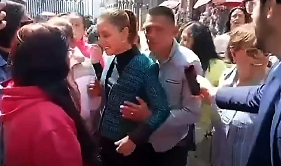 Sheinbaum quickly pushed his hands away and turned to confront him, but it took several seconds for a government aide to intervene and separate them.