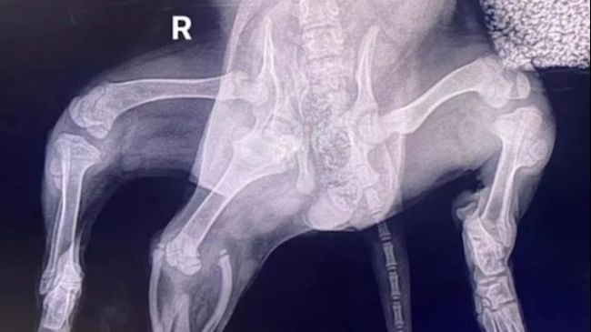 After an examination, the puppy appeared to have two extra legs and two vulvas – despite being in reasonable condition.Credit: Greenacres Rescue/Media Wales