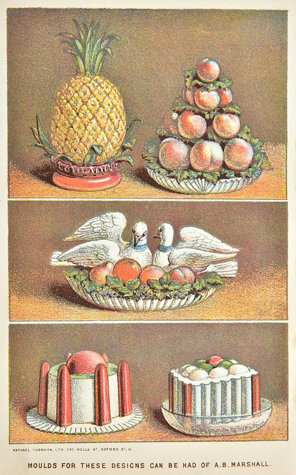 Some of the different ice cream designs made by Agnes B. Marshall. Dominic Winter Auctioneers.