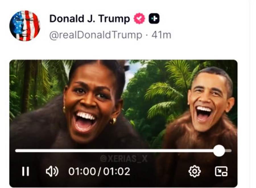 US President Donald Trump is under fire for sharing a social media video showing former President Barack Obama and former first lady Michelle Obama as “monkeys,” a clip that also repeats widely debunked claims that the 2020 US presidential election was rigged.