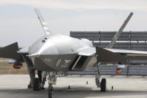 TURKIYE – SEPTEMBER 26: Turkiye’s unmanned fighter jet developed by Baykar, conducting its first flight test. (BAYKAR – Anadolu Agency)