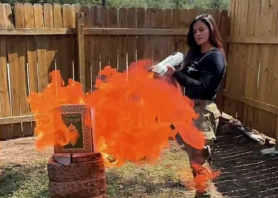 Gomez has built a profile around inflammatory videos and speeches in which she demonises Muslims as violent outsiders. During her US congressional campaign, she released a video showing herself burning a copy of the Qur’an with a flamethrower while declaring that Islam must be stopped “once and for all”.