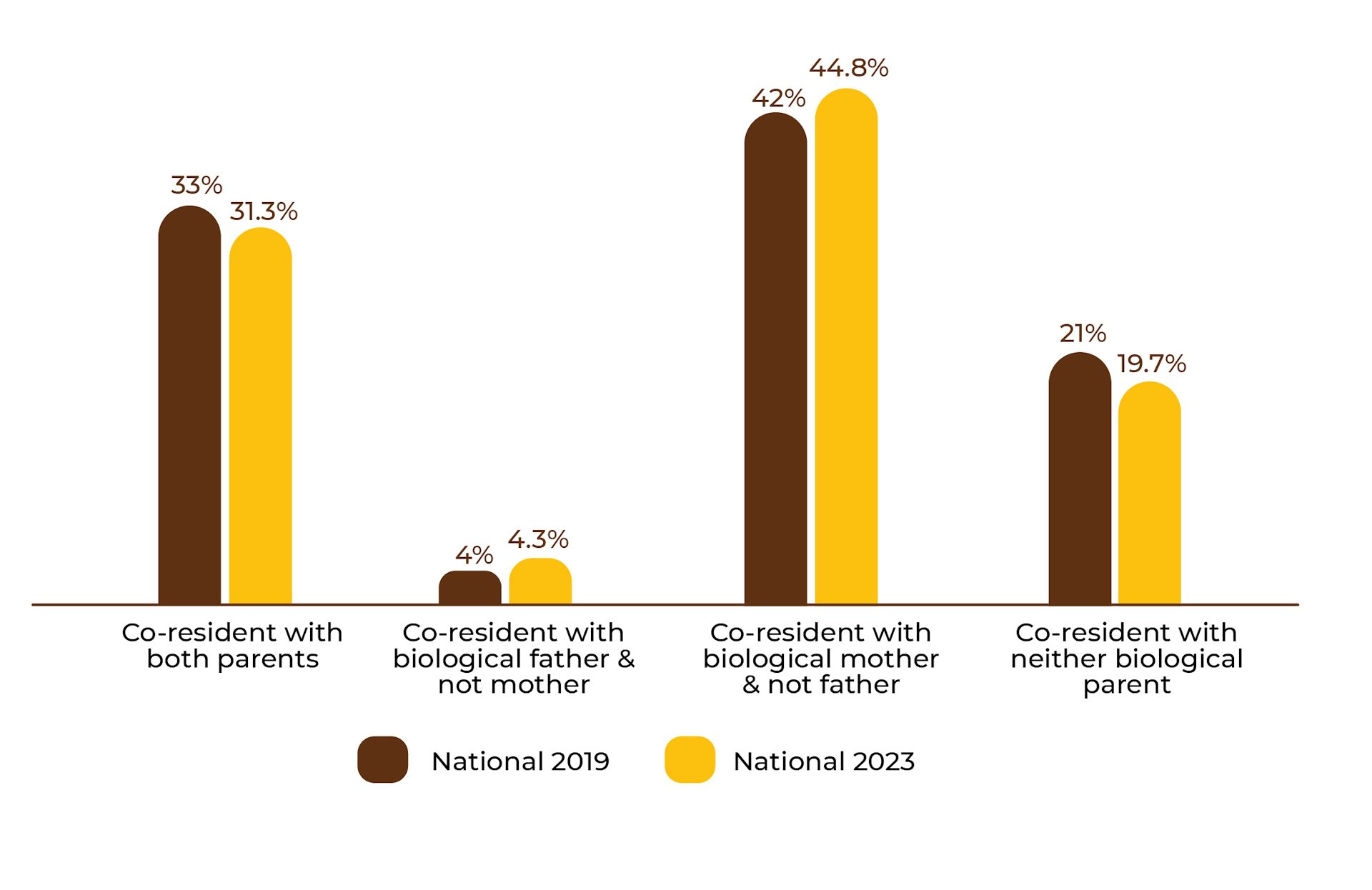 One of the key findings is that 76% of children in South Africa live with an adult male in the household. This is often overlooked when the media and researchers focus on children’s co-residence with fathers.